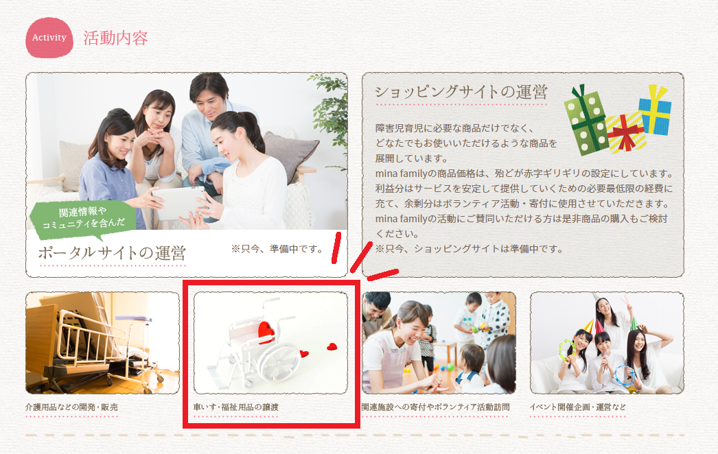 また、コンテンツの中の『中古の福祉用品 譲渡仲介』というものについて、皆さんにお願いがあります。